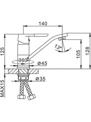 Смеситель оснащён однорычажным (рычажным) управлением: вы легко регулируете температуру и напор воды одной рукой, что ускоряет процесс мытья посуды и экономит время.