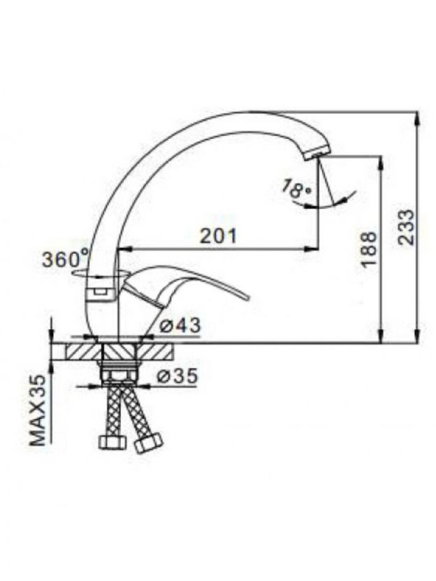 Благодаря универсальному креплению (1 отверстие, диаметр 43 мм) и гибкой подводке, монтаж прост даже без профессиональных навыков. Материал корпуса устойчив к ржавчине, а керамический картридж рассчитан на длительный срок службы.