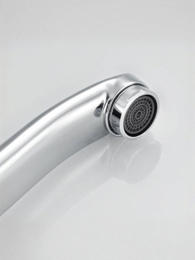 Корпус выполнен из силумина, а длина поворотного излива составляет 22,1 см, высота — 10,6 см. Это оптимальные параметры для большинства кухонных моек.
