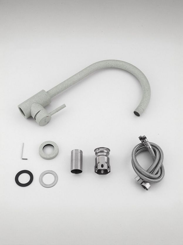 - Универсальность для кухни в городской квартире, на даче или в подарок — монтаж в одно отверстие, гибкая подводка, стандарт 1/2"
