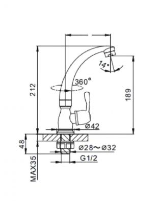 Высота излива — 18,9 см, длина излива — 10,9 см, монтаж в 1 отверстие диаметром 43 мм, крепление — гайка, стандарт подводки — 1/2". Установка занимает 10-15 минут.