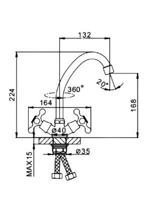 • Уникальное решение: двухвентильный смеситель с керамической кран-буксой — плавное управление, долговечность, простая регулировка температуры