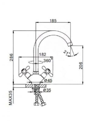 • Стандарт подводки: G 1/2, гибкая 30 см.