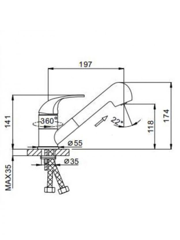 • Выдвижной излив с лейкой — удобно мыть посуду и наполнять большие ёмкости
