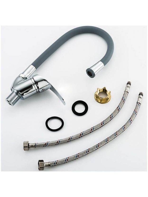 В отличие от аналогов с пластиковым корпусом или коротким изливом, эта модель имеет среднюю длину (17 см), высокий поворотный излив и надежное крепление на гайке. Это делает ее удобной для ежедневного использования и устойчивой к износу. Отсутствие дополнительных функций вроде водонагревателя упрощает обслуживание и снижает риск поломок.