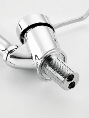 Корпус — алюминий, поверхность глянцевая. Управление — однорычажное, поворотное, с керамическим картриджем для надежной герметизации.