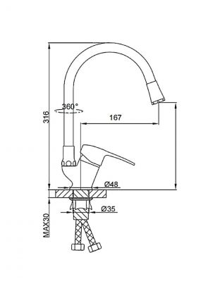 Гибкий излив облегчает мытье крупной посуды, наполнение высоких кастрюль, а также помогает поддерживать чистоту раковины, экономя ваше время и воду.