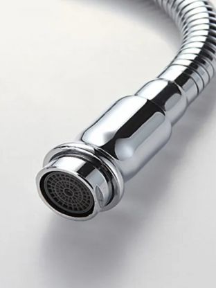 Гибкий излив позволяет удобно направлять поток воды, облегчает мытье крупной посуды и экономит время при уборке. Аэратор снижает расход воды без потери давления.