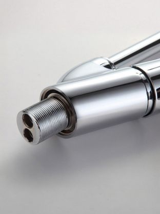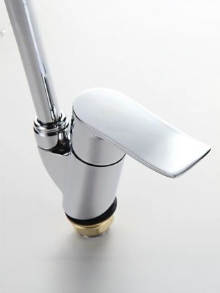 Если вы ищете, какой смеситель выбрать для кухни с одной мойкой, Frud R43101 подойдет благодаря стандартному монтажному отверстию 45 мм и гибкой подводке. В отличие от моделей с коротким изливом, этот смеситель обеспечивает больший радиус действия, а круглая форма и средняя высота (18,5 см) делают его универсальным для большинства кухонных интерьеров. Отсутствие пластиковых элементов в корпусе продлевает срок службы, а хромированная поверхность устойчива к появлению пятен и легко очищается.