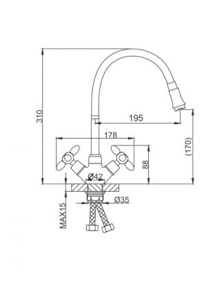 - Гибкий излив 19,5 см: удобно мыть посуду любых размеров, легко направлять поток воды