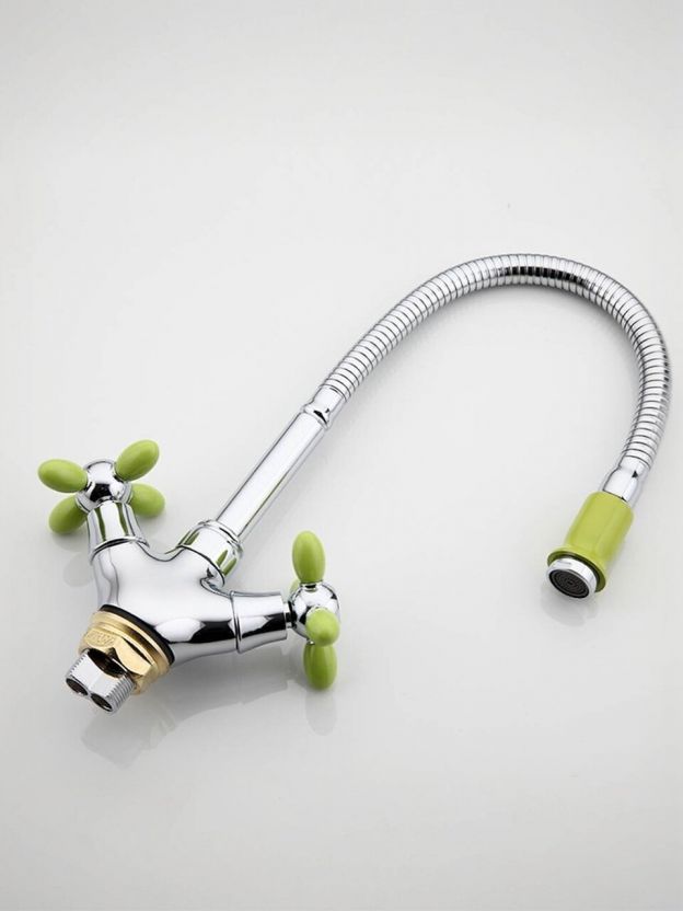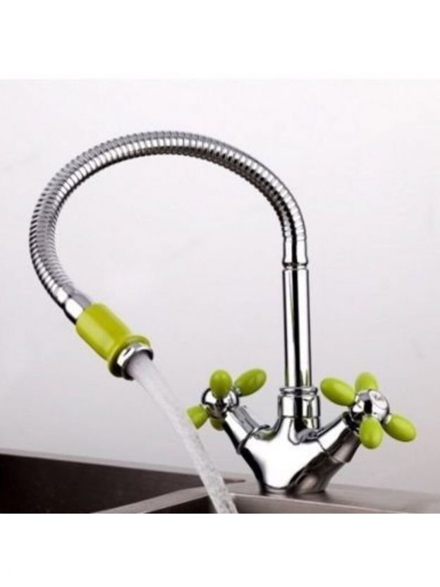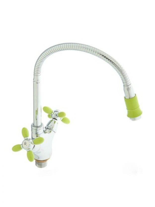 Смеситель для кухни, Frud, гибкий излив, с кран-буксой, зеленый, R43127-6