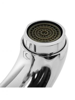 Часто спрашивают: «Как выбрать смеситель для кухни с гибкой подводкой?» — Frud R41104 комплектуется стандартным подключением 1/2" и устанавливается в одно монтажное отверстие диаметром 45 мм, что облегчает замену старого смесителя без сложных доработок. В отличие от моделей с пластиковым корпусом, этот смеситель прочнее и служит дольше. Аэратор экономит расход воды и делает струю мягче, что особенно удобно для мытья овощей и посуды.