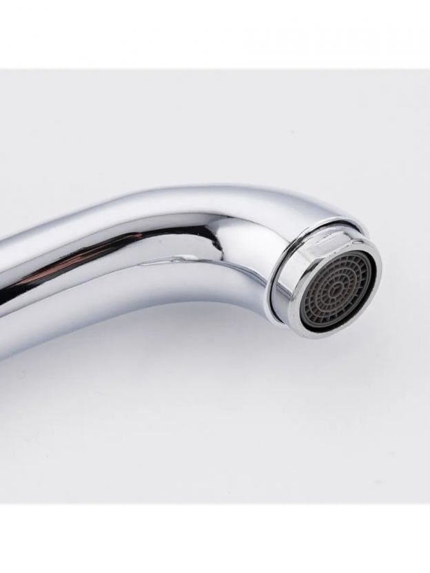 • Корпус из силумина, керамический картридж, высокий поворотный излив (18,5 см) — продуманная эргономика и долговечность