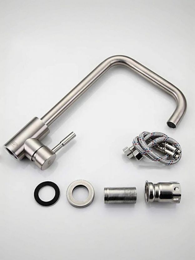 - Идеален для кухни в квартире, на даче или в подарок: универсальный серебристый цвет, гибкая подводка, совместимость с большинством моек