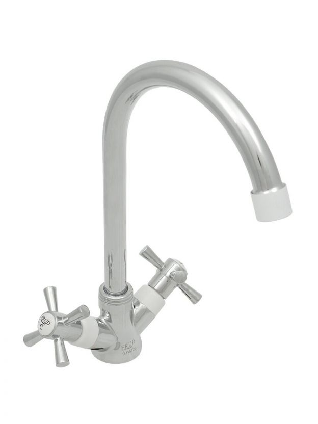 Как выбрать смеситель для кухни? Frud R49118-7 — оптимальный вариант для тех, кто ищет надежность и простоту. Высокий поворотный излив обеспечивает удобный доступ к мойке, а двухвентильное управление позволяет точно регулировать температуру и напор воды. Белый глянцевый корпус из силумина не боится влаги и сохраняет эстетичный вид даже при интенсивной эксплуатации.