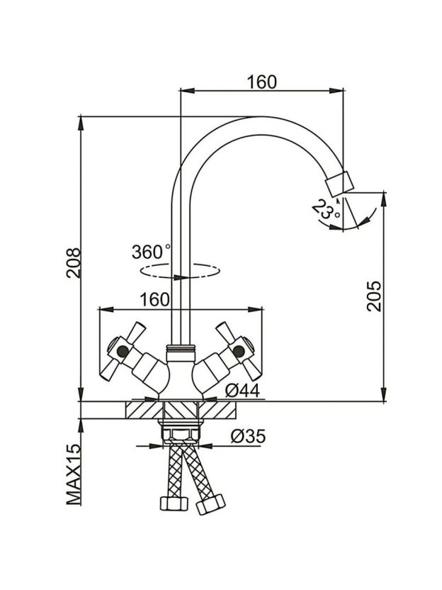 Для монтажа требуется 1 отверстие диаметром 45 мм, стандартная подводка шланга — 1/2".
