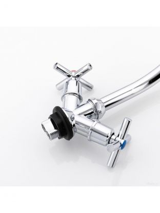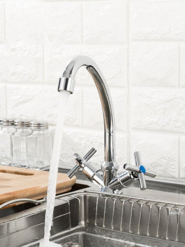 - Двухвентильный смеситель с керамической кран-буксой — плавное управление, надежность и отсутствие протечек
