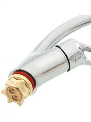 G.lauf 9G4-A181 оснащён высоким поворотным изливом длиной 21 см, что удобно для мытья крупной посуды и наполнения высоких ёмкостей. Материал корпуса — латунь, поверхность — глянцевый хром.
