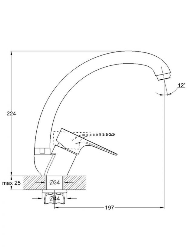 Высота излива — 22,4 см, длина — 19,7 см, что удобно для мытья крупной посуды и наполнения высоких емкостей.