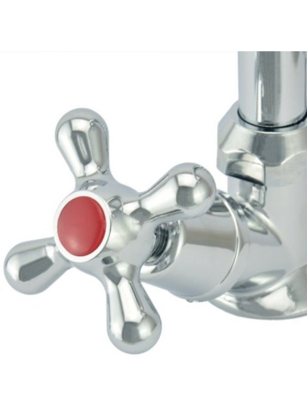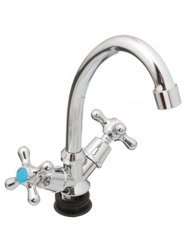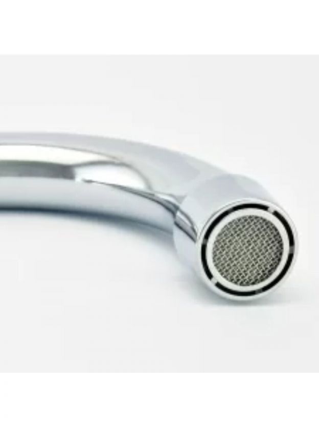 - Корпус из силумина с глянцевым хром-покрытием, монтаж в 1 отверстие диаметром 55 мм — подходит для большинства кухонных моек
