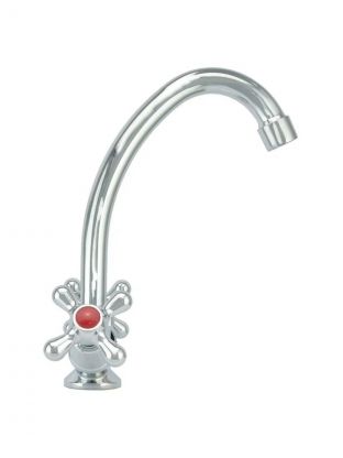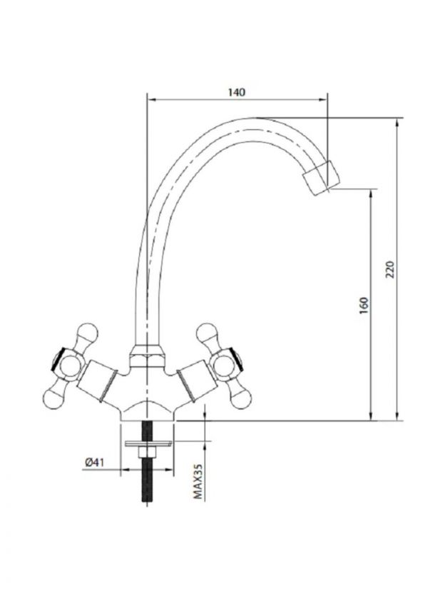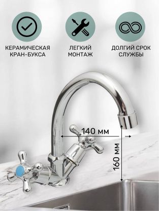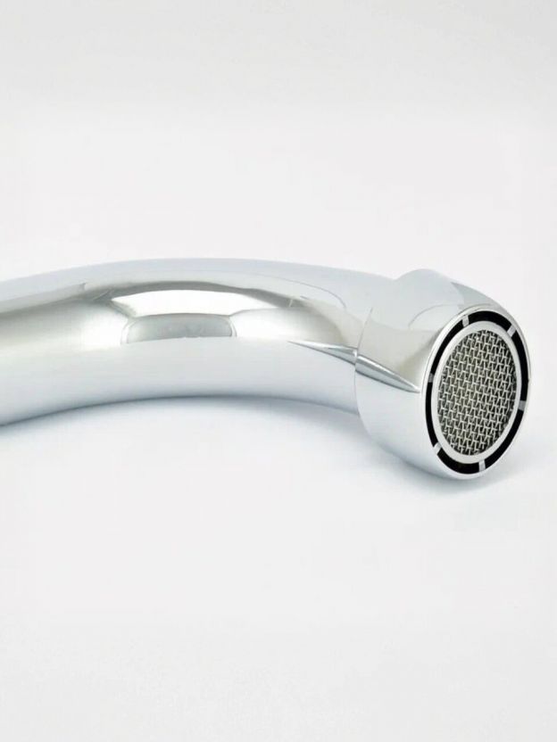 • Корпус из силумина с глянцевым хромированием — стойкость к коррозии, высота излива 16 см, длина 14 см, монтаж в одно отверстие (диаметр 41 мм).
