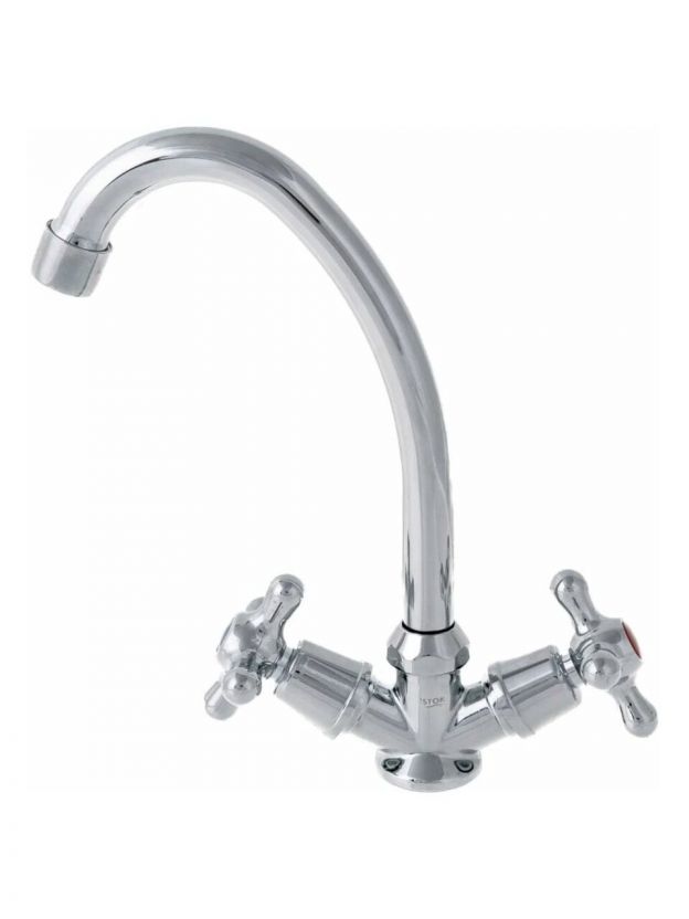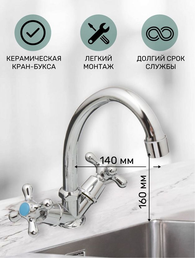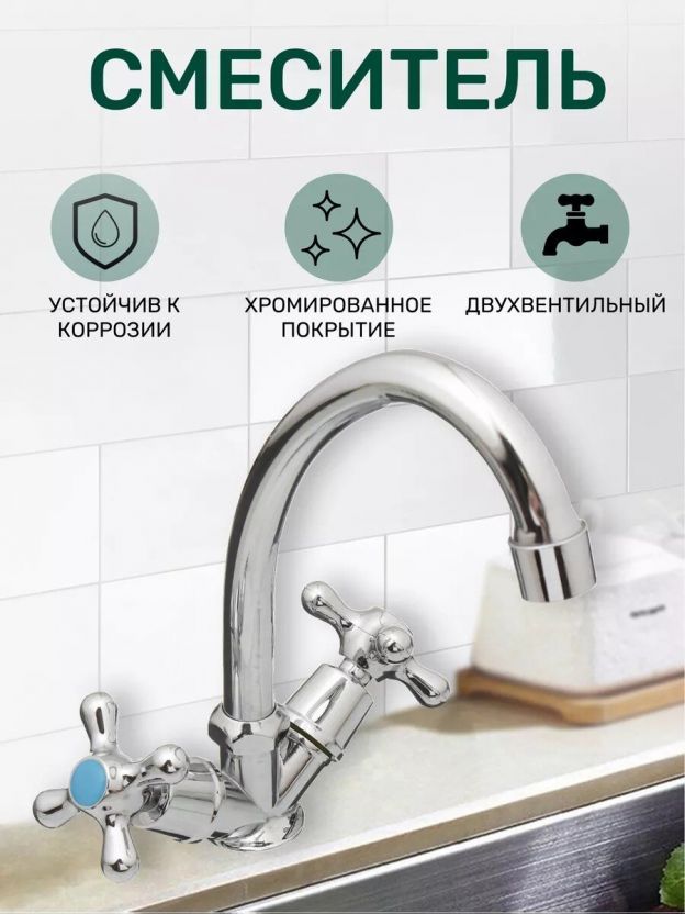 Смеситель для кухни Istok life 0402.712: долговечный двухвентильный кран с высоким изливом, гибкой подводкой и глянцевым покрытием — оптимальный выбор для дома и дачи.