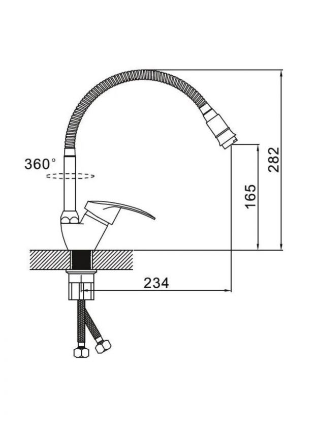 • Гибкий излив — удобно направлять струю, легко мыть крупную посуду и труднодоступные зоны