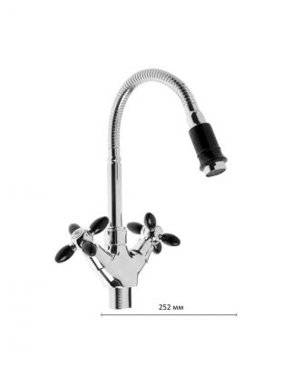 Смеситель для кухни, Эверест, гибкий излив, с кран-буксой, черный, B58-071F