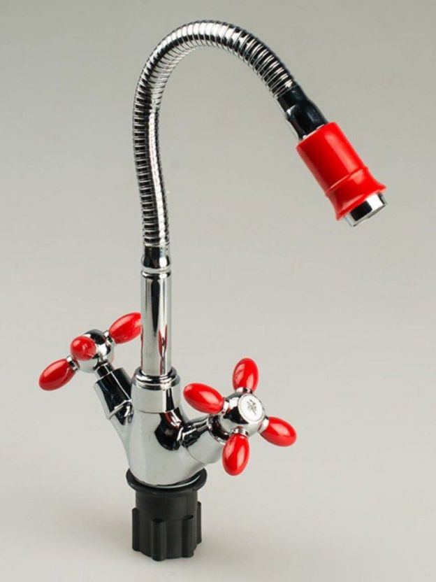 Смеситель для кухни, Эверест, гибкий излив, с кран-буксой, красный, B58-071C