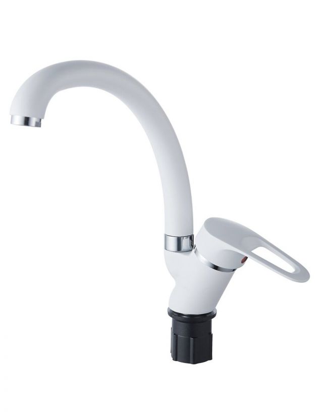 Смеситель для кухни Эверест B59-0267: стильный белый дизайн, высокий поворотный излив 19,7 см, долговечный цинковый сплав — решение для современной кухни.