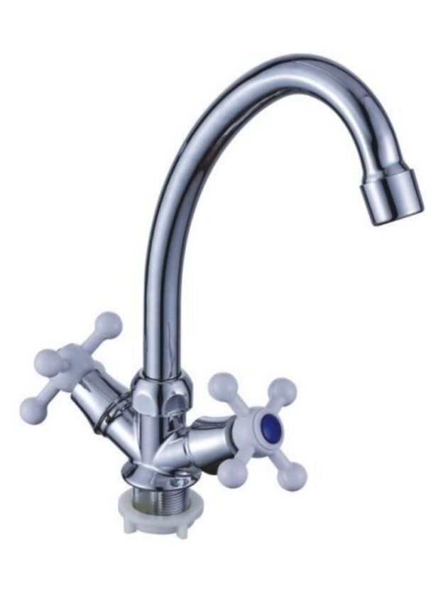 Смеситель для кухни Эверест B49-352: надёжный двухвентильный вариант с высоким поворотным изливом, глянцевым покрытием и керамической кран-буксой для долгой службы.
