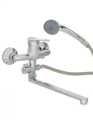 - Корпус из силумина с глянцевым хром-покрытием — устойчив к коррозии, излив 21,8 см подходит для большинства моек