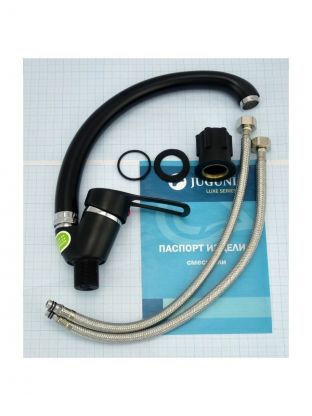 Смеситель для кухни Juguni 0402.451 — стильный черный акцент, надежный керамический картридж, экономия воды и пространства. Идеальное решение для дома и дачи.