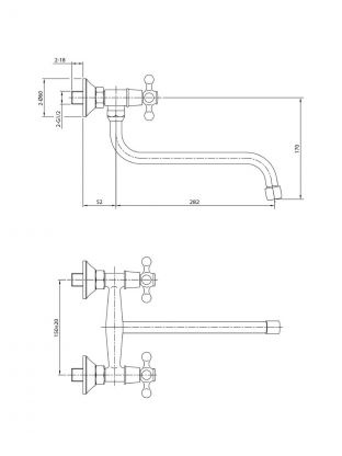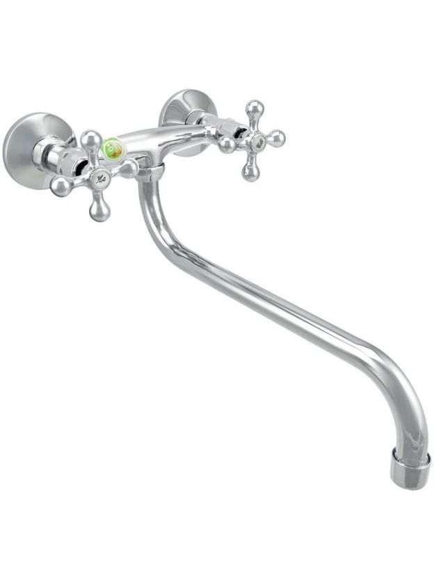 - Корпус из силумина, глянцевый хром — устойчив к коррозии, длина излива 28,2 см для удобства мытья