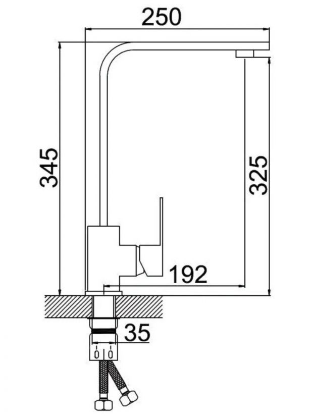 Для установки потребуется одно отверстие диаметром 35 мм, стандарт подводки — 1/2 дюйма.