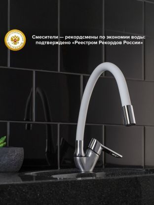 Гибкий излив позволяет легко направлять поток воды, удобно мыть овощи, посуду и наполнять высокую тару — особенно полезно для семейной кухни и дачи.