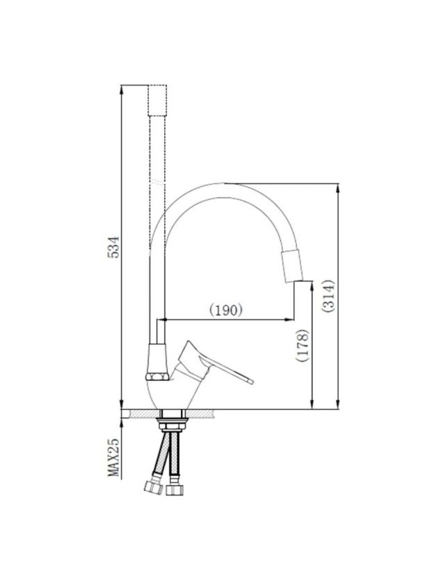 • Гибкий излив 19 см — удобно мыть посуду и наполнять высокую посуду, аэратор для мягкой струи
