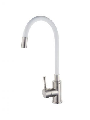 Смеситель для кухни, РМС, гибкий излив, с картриджем, белый, SUS124W-016F