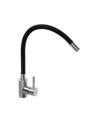 Смеситель для кухни РМС SUS124BL-016F с гибким изливом — современное решение для удобства и стиля. Черный матовый корпус из нержавеющей стали, высота излива 26 см, монтаж за 10 минут.