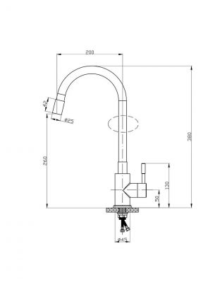 - Гибкий излив 20 см: легко направлять поток воды, мыть крупную посуду и наполнять высокие ёмкости