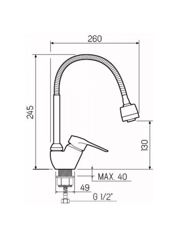Длина гибкого излива составляет 26 см, высота — 13 см. Это оптимально для большинства кухонных раковин, удобно для мытья посуды и наполнения высоких емкостей.