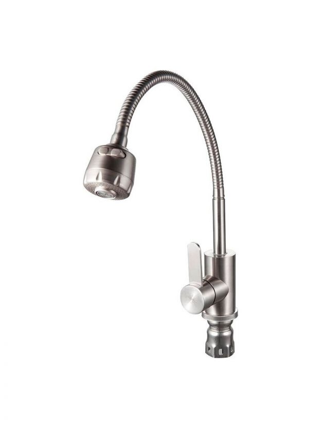 Смеситель для кухни РМС с гибким изливом — популярный выбор среди тех, кто ищет надежный и функциональный кран для кухни или дачи. Благодаря матовой поверхности из нержавеющей стали и однорычажному управлению, модель сочетает современный стиль и практичность. Гибкий излив длиной 21 см и высотой 38 см делает использование максимально удобным: вы легко направите поток воды туда, куда нужно, даже при установке глубокой мойки.