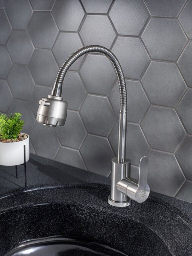 Часто спрашивают: чем отличается гибкий смеситель от обычного? Главное преимущество — мобильность: гибкий излив позволяет быстро менять направление струи, что особенно актуально для семей и тех, кто часто готовит. Подходит ли для фильтрации воды? Модель не оснащена отдельным переключателем на фильтр, но стандартный размер подводки 1/2" облегчает подключение к большинству систем. Как выбрать смеситель для дачи? SUS124-016F устойчив к перепадам температуры, не подвержен ржавчине, а монтаж в 1 отверстие (35 мм) занимает минимум времени.
