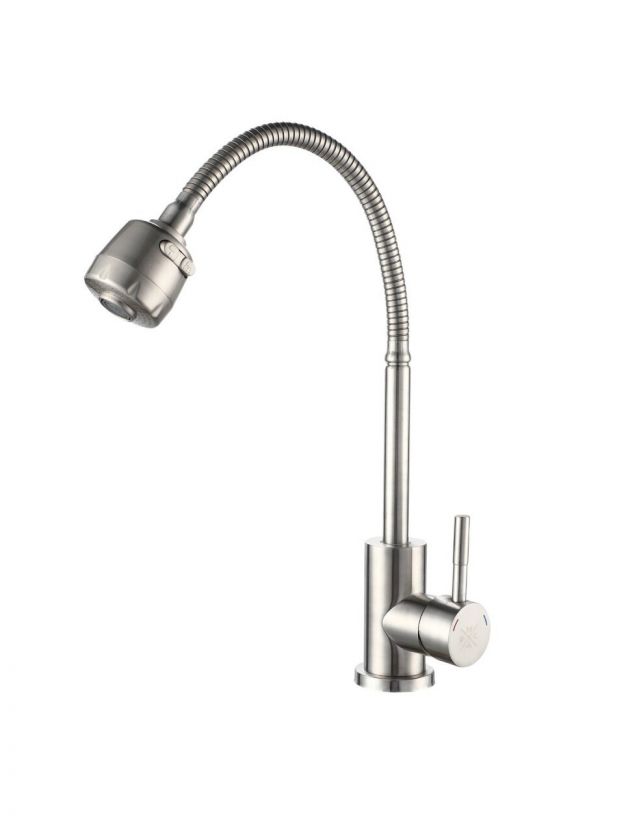 Смеситель для кухни, РМС, гибкий излив, с картриджем, нержавеющая сталь, SUS124-016F