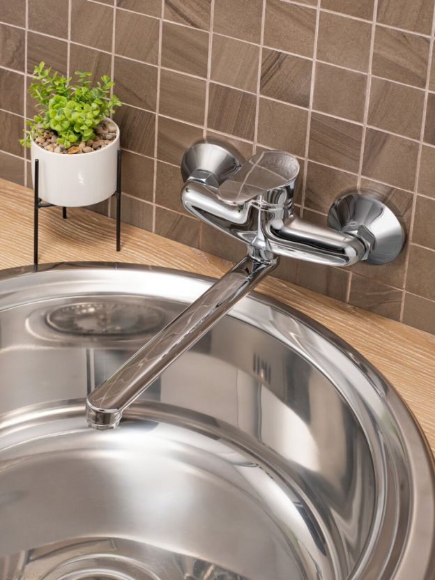 - Практичность и долговечность: корпус из цинкового сплава, керамический картридж, длина излива 25,4 см для удобства мытья крупной посуды.