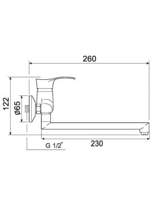 Смеситель устанавливается вертикально на стену, подходит для монтажа через 2 отверстия диаметром 35 мм, стандарт подключения шланга — 1/2", крепление на эксцентрики.
