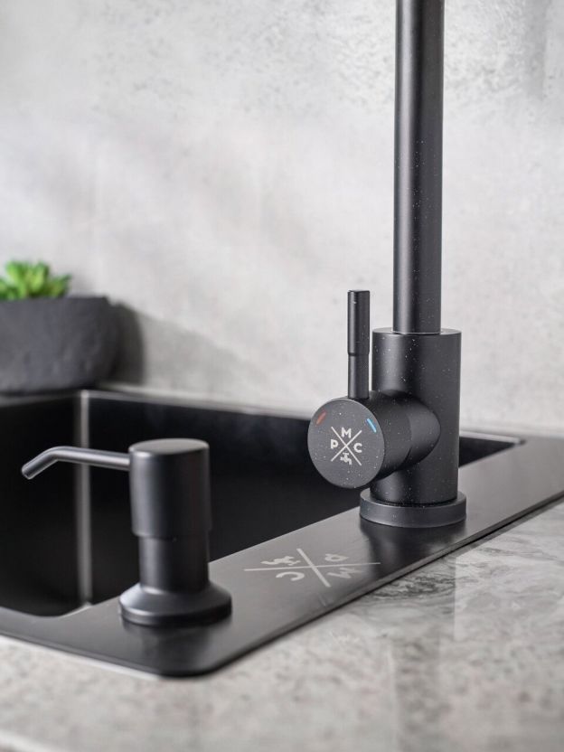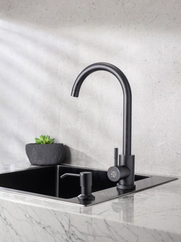 Если вы ищете, какой смеситель для кухни выбрать, обратите внимание на модель РМС SUS124BLK-017F. Этот кран выполнен из нержавеющей стали, что гарантирует устойчивость к коррозии и долгий срок службы. Матовая черная поверхность легко сочетается с современной техникой и мебелью, а высокий излив (25 см) облегчает мытье крупной посуды и наполнение высоких емкостей.