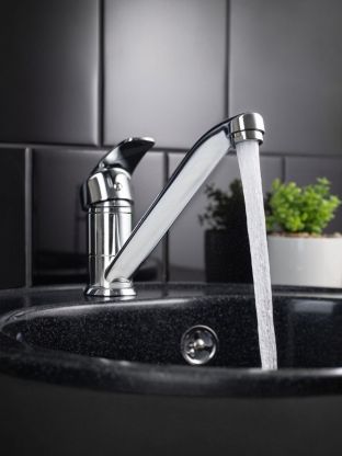 Высота излива — 14 см, длина — 25 см. Излив поворотный, что удобно для мытья посуды и наполнения емкостей разного размера.