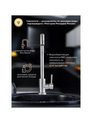 Высокий излив (25 см) позволяет легко мыть крупную посуду и наполнять большие ёмкости, что особенно удобно для семейных кухонь и дачи.