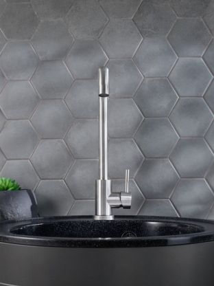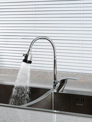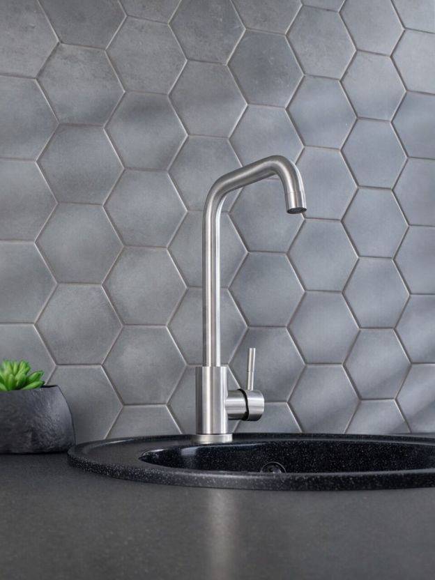 - Подходит для городской квартиры, дачи, кухни в офисе — универсальный стиль и простота установки одним отверстием